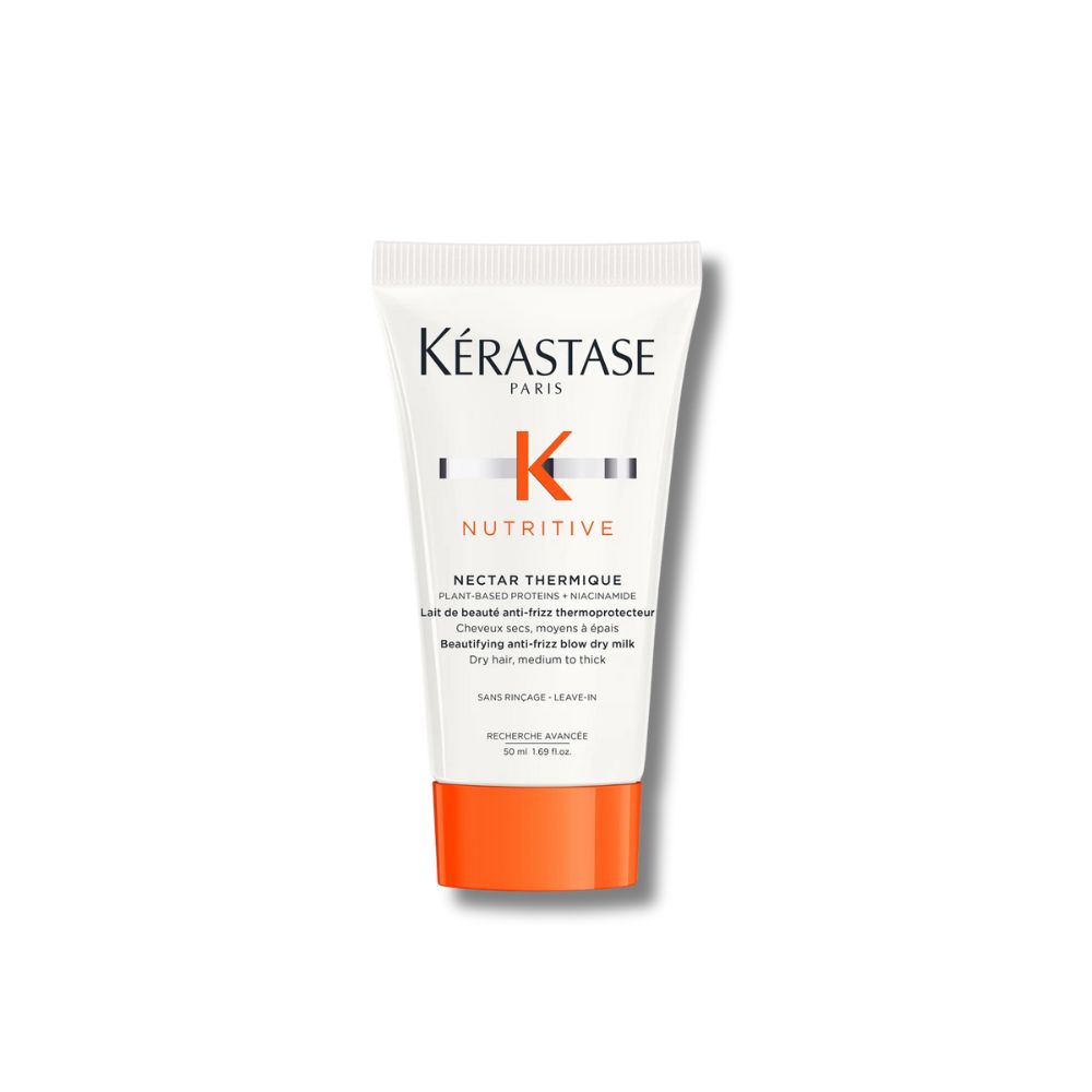 Conheça o Nutritive Protetor Térmico Nectar Thermique de Kérastase na versão prática de 50ml. Este leite antifrizz é o cuidado intensivo ideal para cabelos secos médios a grossos, garantindo nutrição e defesa onde você estiver.